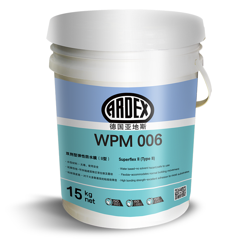 ARDEX WPM 006 (II 型) 是一種雙組份、高柔性的防水膜,使用于潮濕區(qū)域,如浴室、陽臺、露臺、盥洗室等地方的牢固耐用的涂布式防水層。